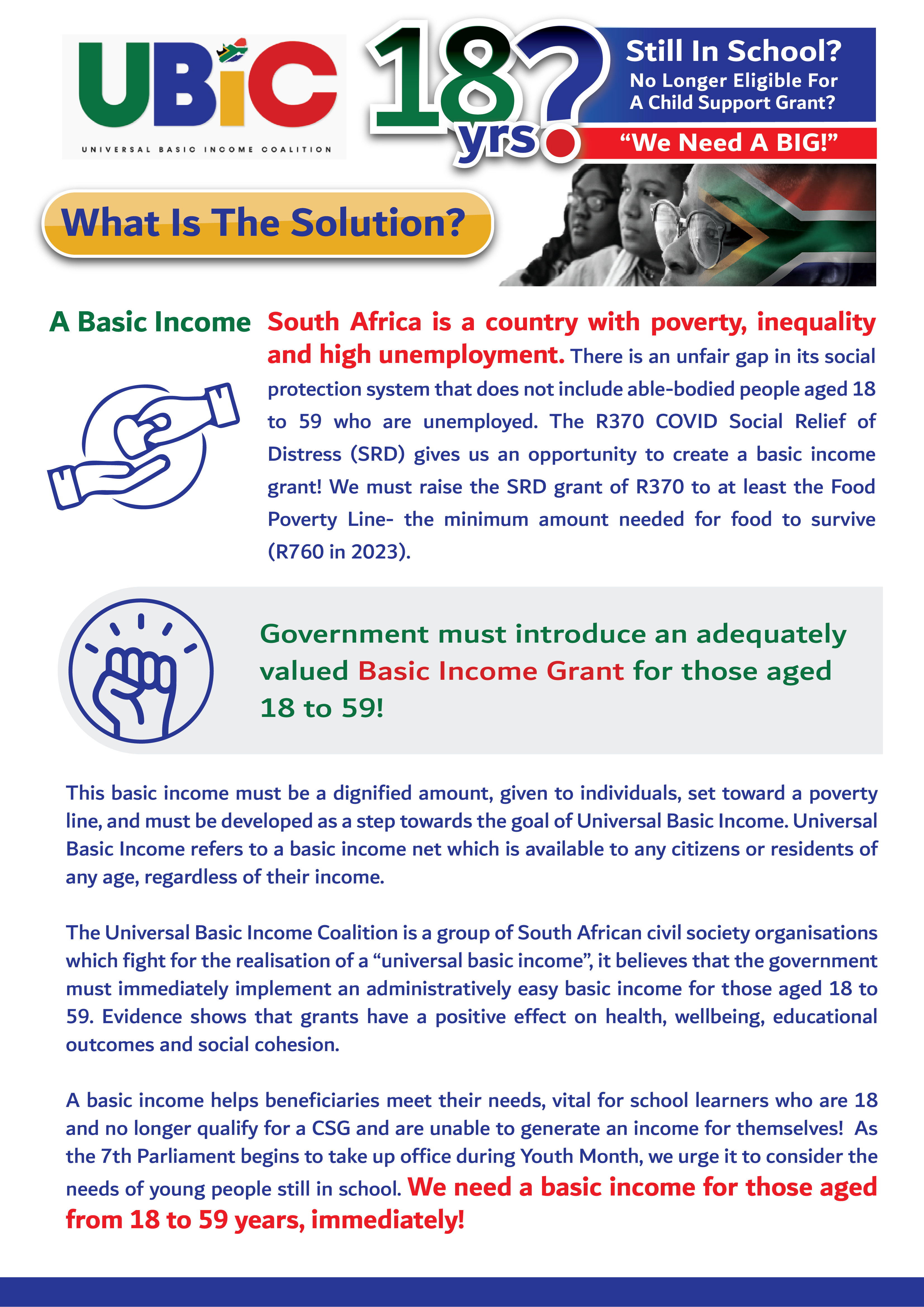 Download ResourceSubscribe to stay informed, get updates on our campaign, and learn how you can support the push for a Universal Basic Income in South Africa.